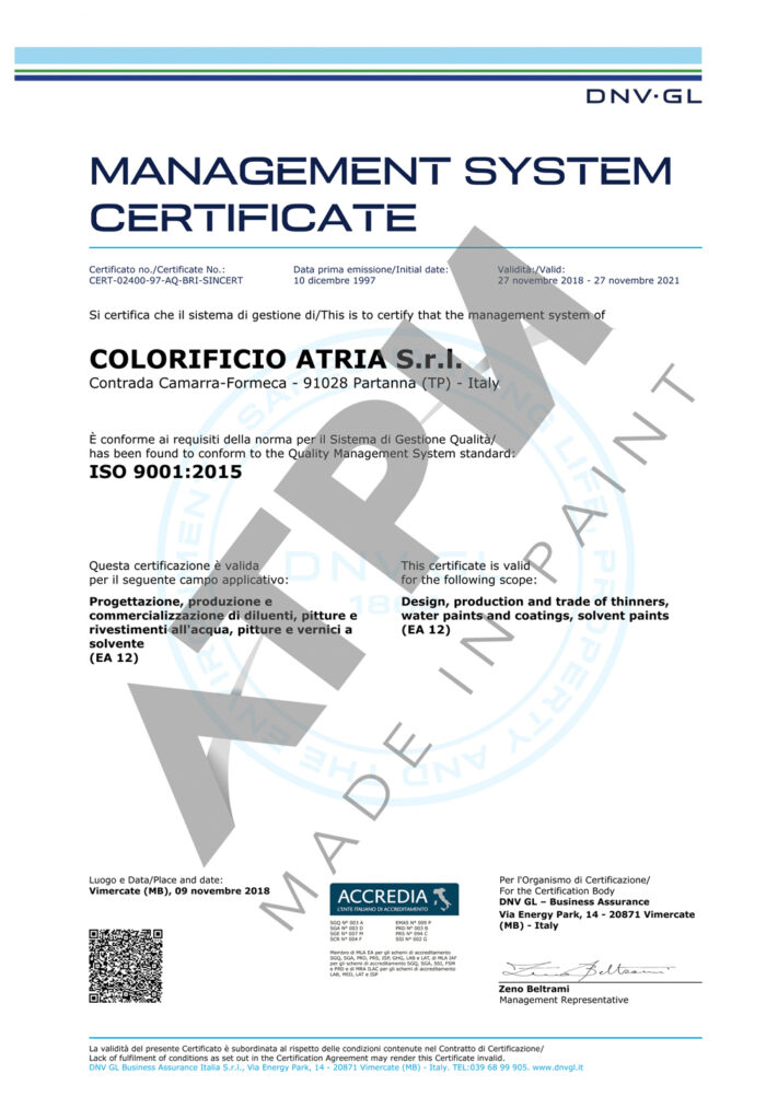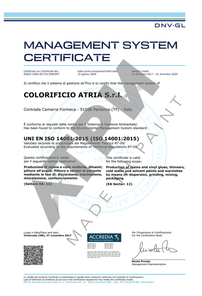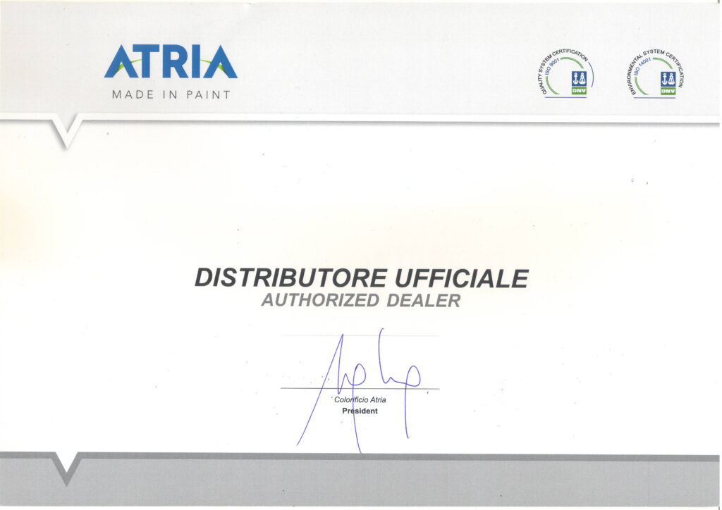 Нашите партньори притежават международно признати сертификати ISO 9001 и ISO 14001 за фирмената система за управление на качеството и опазване на околната среда. Предлаганите от нас продукти отговарят на последните изисквания на Директивите на Европейския съюз за съдържание на VOC – летливи органични съединения. Тези сертификати са гаранция за високо технологично ниво на произвежданата продукция, спазване на строгите изисквания за опазване на околната среда и осигуряване на безопасност на труда при нанасяне на покритията.