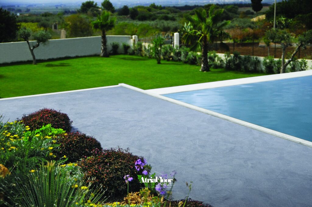 Atriafloor In/Out е система, с която можете да декорирате всяка вътрешна или ВЪНШНА повърхност от вашия дом. Всички бариери са преодоляни благодарение на употребата на изключително устойчива смола и керамични микросфери.