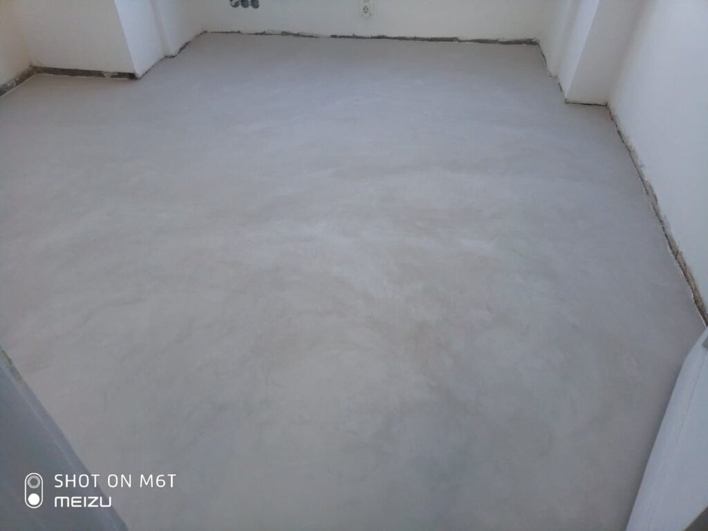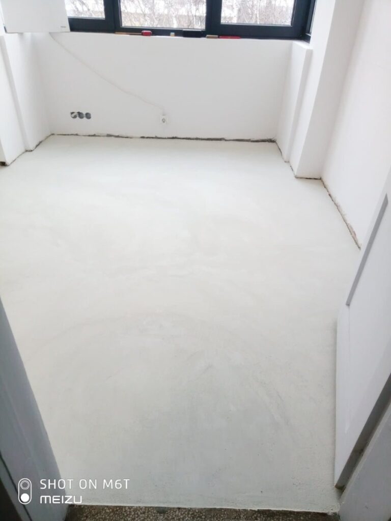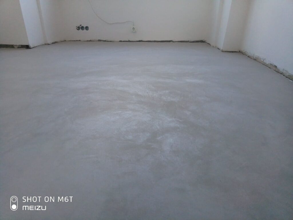 Когато декорираме ново жилище, имаме „бяло платно”, на което можем да развихрим въображението си и да творим от нула. Но когато решим да обновим нашият дом, често се сблъскваме с различни проблеми. Често, след промяна на разпределението, функцията на едно помещение се променя коренно, а друго се явява „мозайка” от части от различни стаи. В тази статия ще Ви представим чудесен начин да елиминирате разликите в подовите настилки в едно помещение, да обедините пространството и да създадете модерен и стилен интериор. Преди началото на реновирането в помещението има три вида настилка – мозайка, бетон и циментова замазка, които трябва да бъдат подходящо грундирани, за да се осигури адхезията на следващите слоеве.