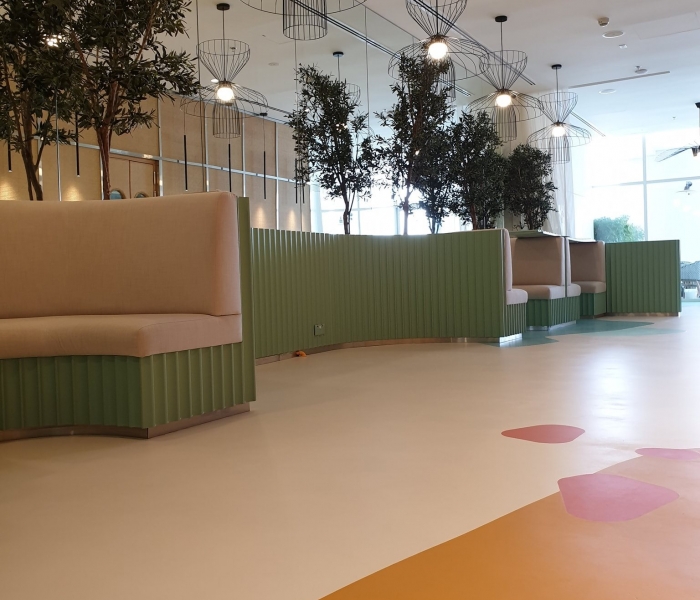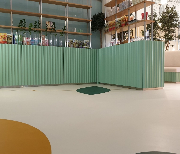 • Съответната цветова таблица, включваща 36 пастелни цвята. Декоративната система ONE е идеална, както за жилищни помещения, офиси, магазини, хотели, ресторанти, изложбени зали, така и за подове, стени и тавани във влажни помещения като бани и басейни.