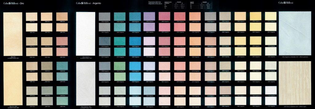 CeboSi Riflessi (ЧебоСи Рифлеси) e декоративната боя с меки перлени отблясъци и деликатни при докосване дълбоки цветове. Удовлетворява съвременните изисквания за елегантност и изтънченост както в класическия, така и в модерния интериор. Предлага се в двe основни бази – Argento и Oro, от които могат да се направят още 120 цвята.
