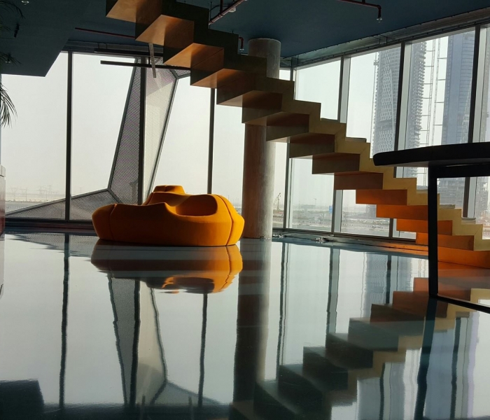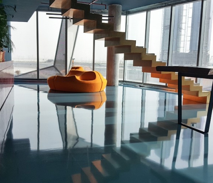 Благодарение на широката гама от цветове с този продукт могат да се реализират саморазливни ДЕКОРАТИВНИ подове. Предлага се и прозрачен, за запечатване на декоративни елементи по подове.